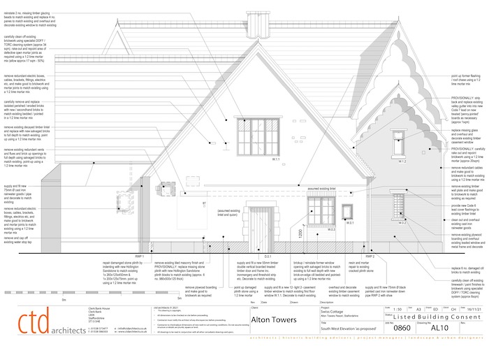 Recently Alton Towers Resort has submitted an application seeking listed building consent for repair and making-good works to the back of The Swiss Cottage located in the Gardens.